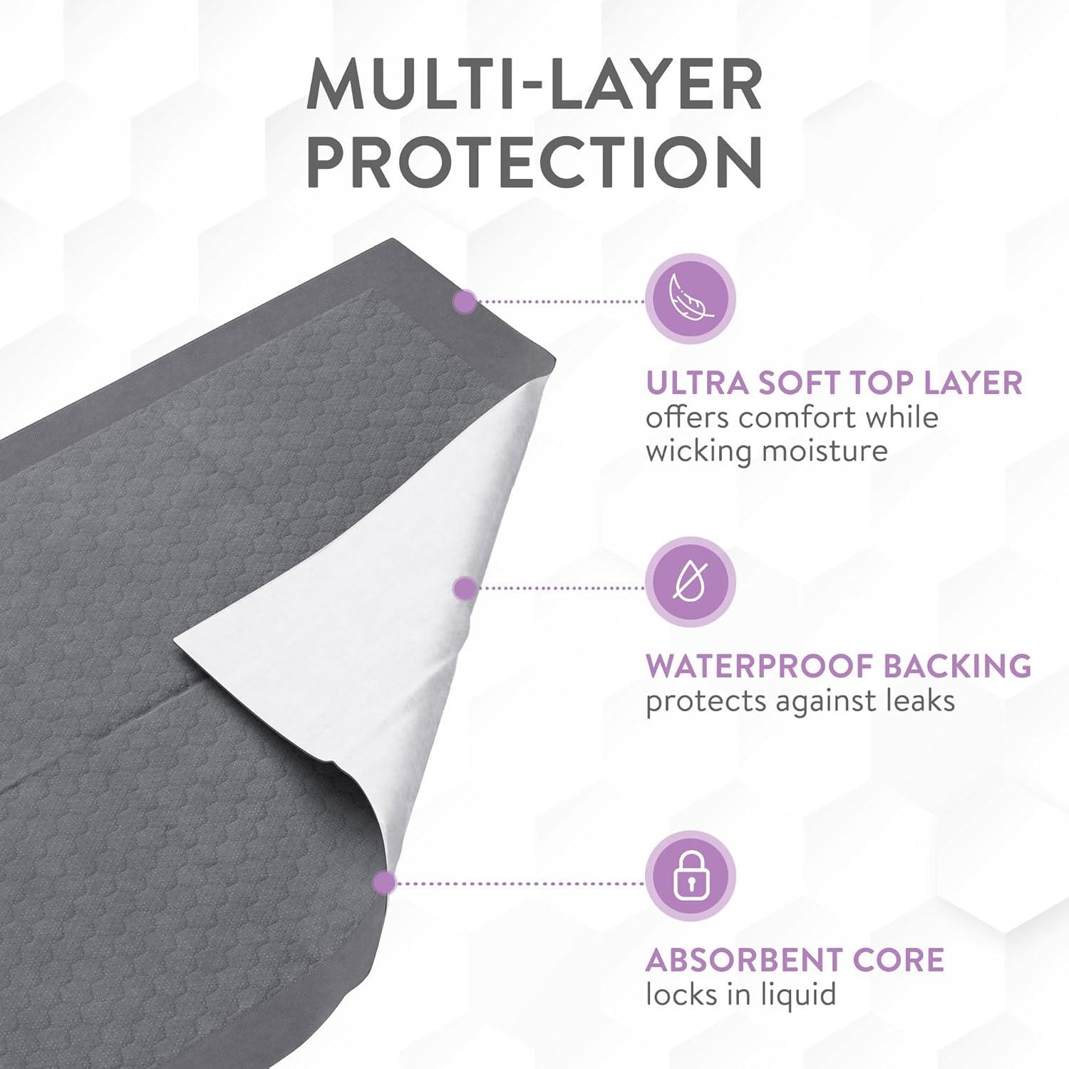 ULTRA SOFT TOP LAYER: Cottony soft top layer offers comfort while wicking away moisture. Highly absorbent pads for beds for incontinence adults that keep you comfortable and dry. Our Inspire chucks pads disposable adult incontinence bed protectors are a convenient and easy way to manage incontinence. To use simply lay the pad flat over the area you want to protect from moisture and stains. The waterproof backing and absorbent pad of these disposable underpads will keep all surfaces dry and stain free.