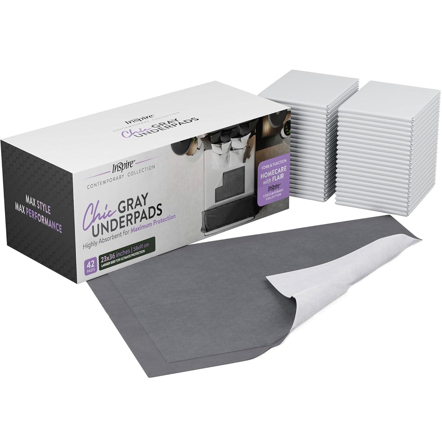 Inspire 42 Count 23” x 36” Ultra Absorbent Underpads for Incontinence Waterproof Bed Pads | Leakproof Quick Drying | Hospital Bed Pads Disposable Adult | Mattress Protector XXL Chucks Pads(23" x 36" Pack of 42)