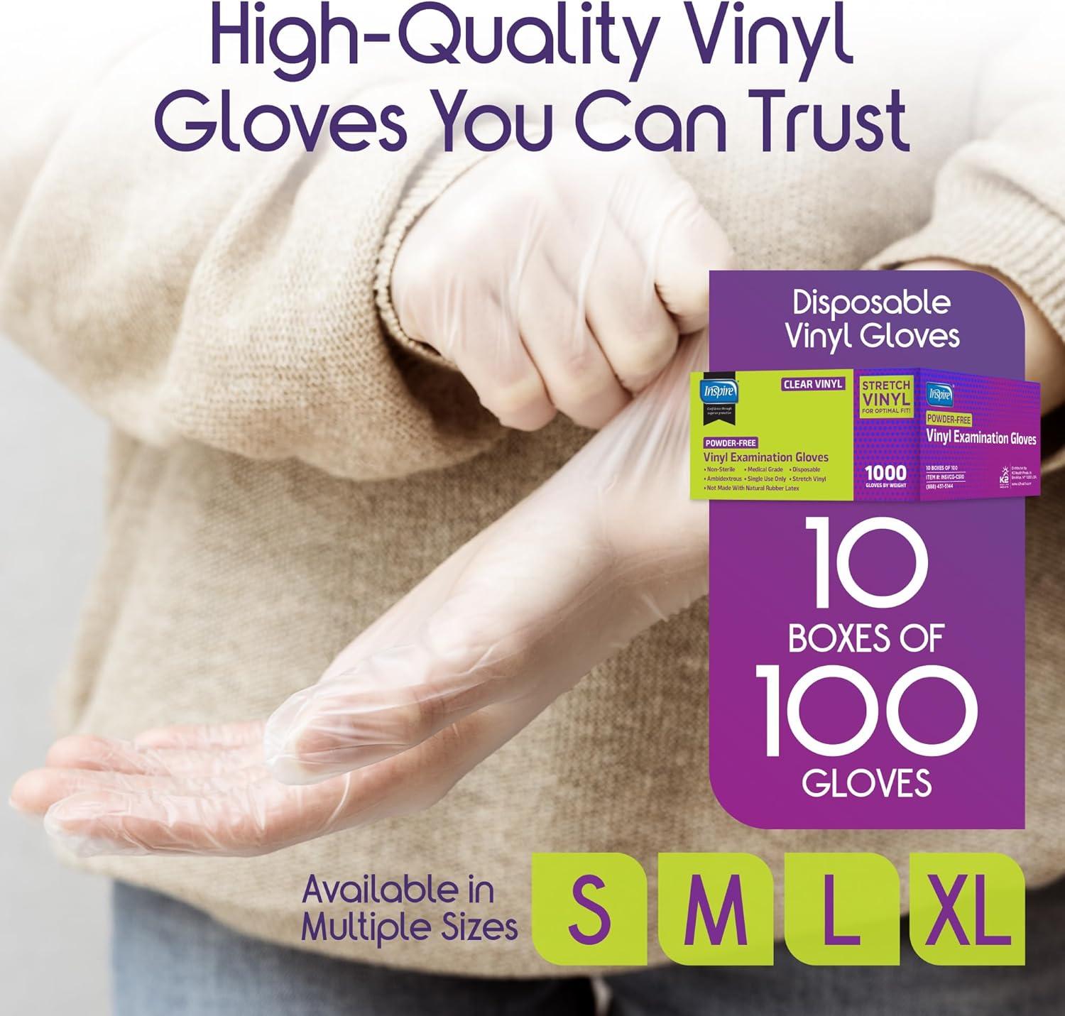 Inspire Stretch Vinyl Exam Gloves | THE ORIGINAL Quality Disposable Latex Free Medical Glove Cleaning Cooking Food Service Labs Healthcare and Household Small, 1000 Count(X-Large (Pack of 1000))