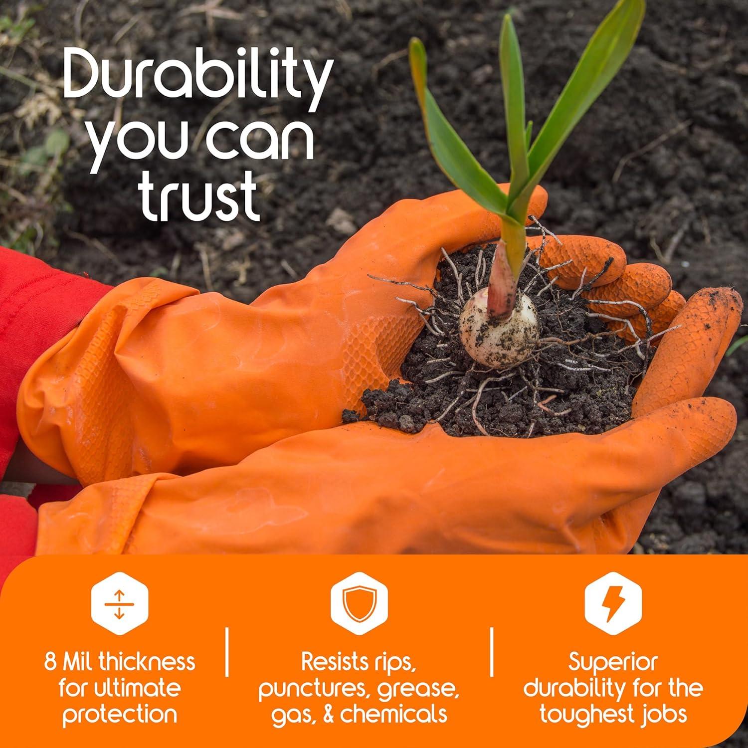 Inspire Heavy Duty Orange Nitrile Gloves | ULTRA 8 Mil Diamond Textured Grip | Industrial Mechanic Disposable Cleaning Gloves(100)