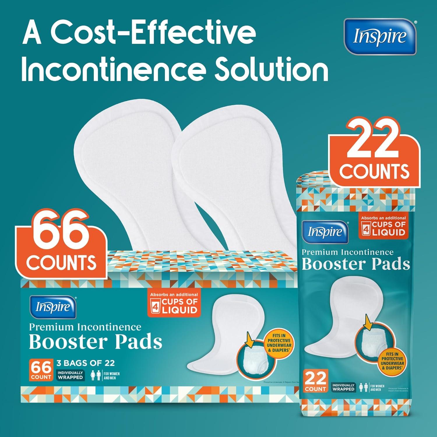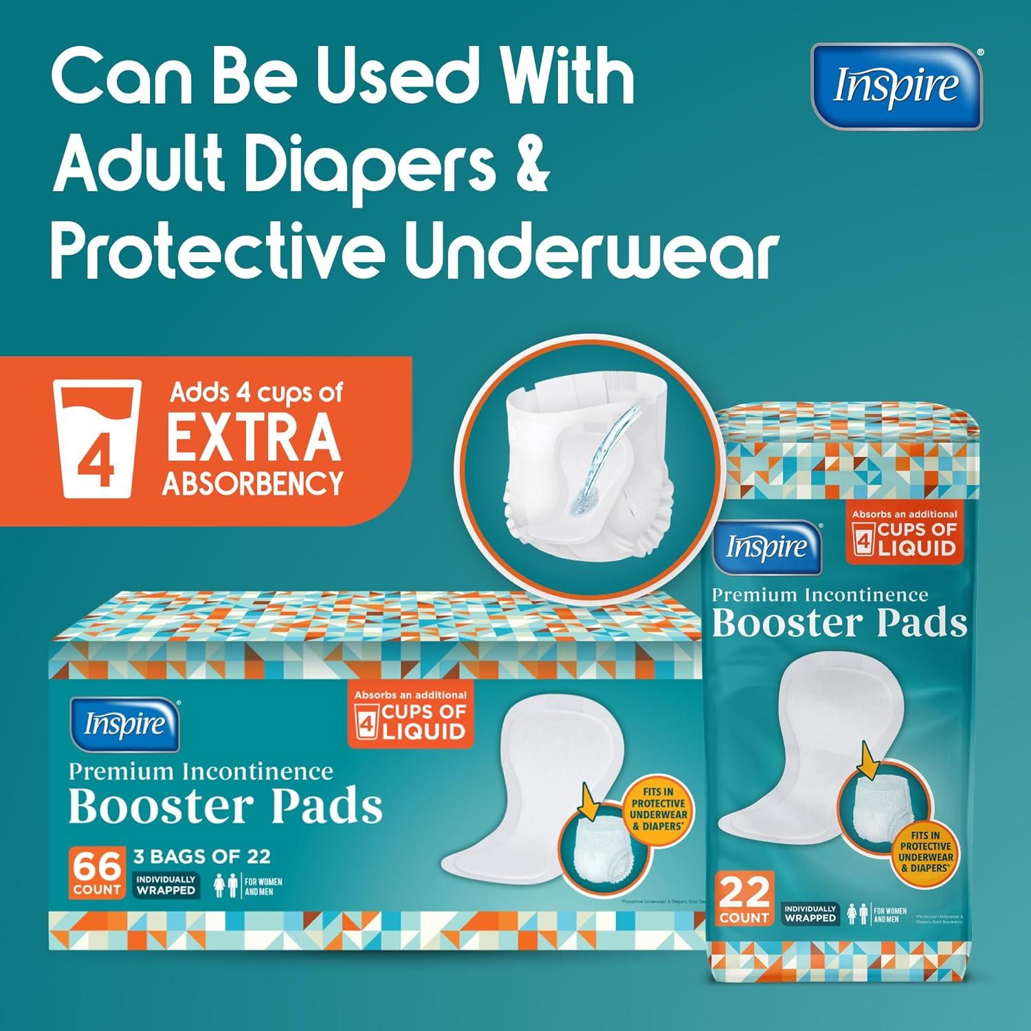 MAXIMUM ABSORBENCY, OVER 4 CUPS: Confidence to get you through the day. Simply add The Inspire Booster Pad to your adult diaper or disposable underwear to boost the absorbency an additional 4 cups! Turn any diaper in to overnight diapers. Feel dry , confident and live leak free!