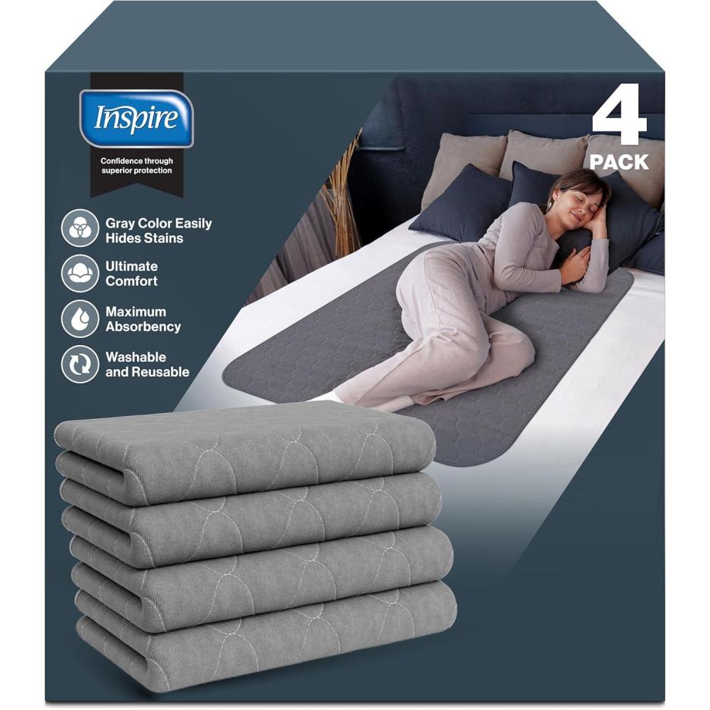 Inspire Underpads | Stain Hiding Gray Reusable Incontinence Bed Pads | Waterproof Mattress Pad | for Adults Babies and Dogs (18 X 24 – 3 Pack)(34 X 36 – 4 Pack)